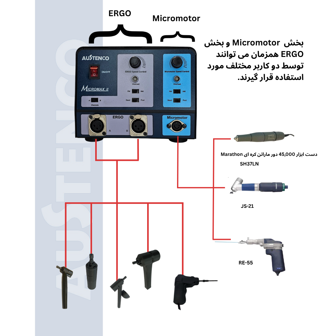 کنترل یونیت دستگاه میکرومکس MMII توانایی پشتیبانی قوی ترین میکروموتورهای ذغالی و موتورهای DC را دارد.